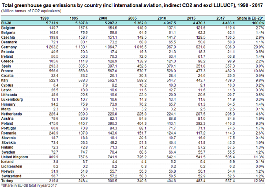 Jumătate din emisiile UE au fost generate de cele mai avansate economii ale Uniunii – Germania, Marea Britanie, Italia și Franța, care sunt și cele mai populate state membre.