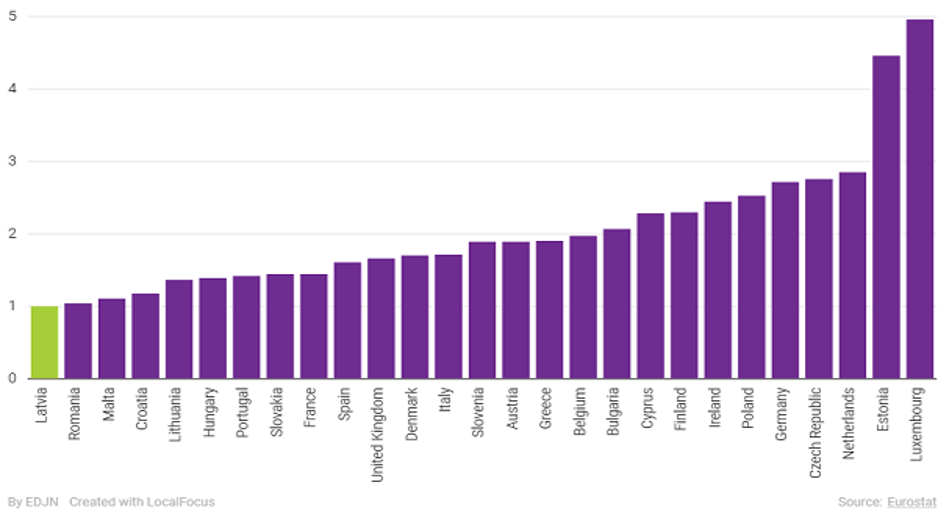 La indicatorul pe cap de locuitor, Lituania, Letonia și România au cele mai reduse astfel de emisii, în timp ce Luxemburg și Estonia conduc în clasament, cu cele mai mari cantități.