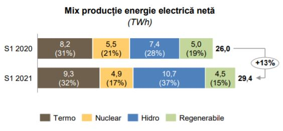 Conform datelor Transelectrica, în primele șase luni ale anului consumul de electricitate al țării (net) a crescut cu 7,5%, însă, pe fondul unei hidraulicități de excepție care a crescut masiv generarea în hidrocentrale, producția națională a crescut mai mult, cu 12,8%. 70% din producția națională de electricitate a venit din surse fără emisii de carbon – regenerabile și nuclear.