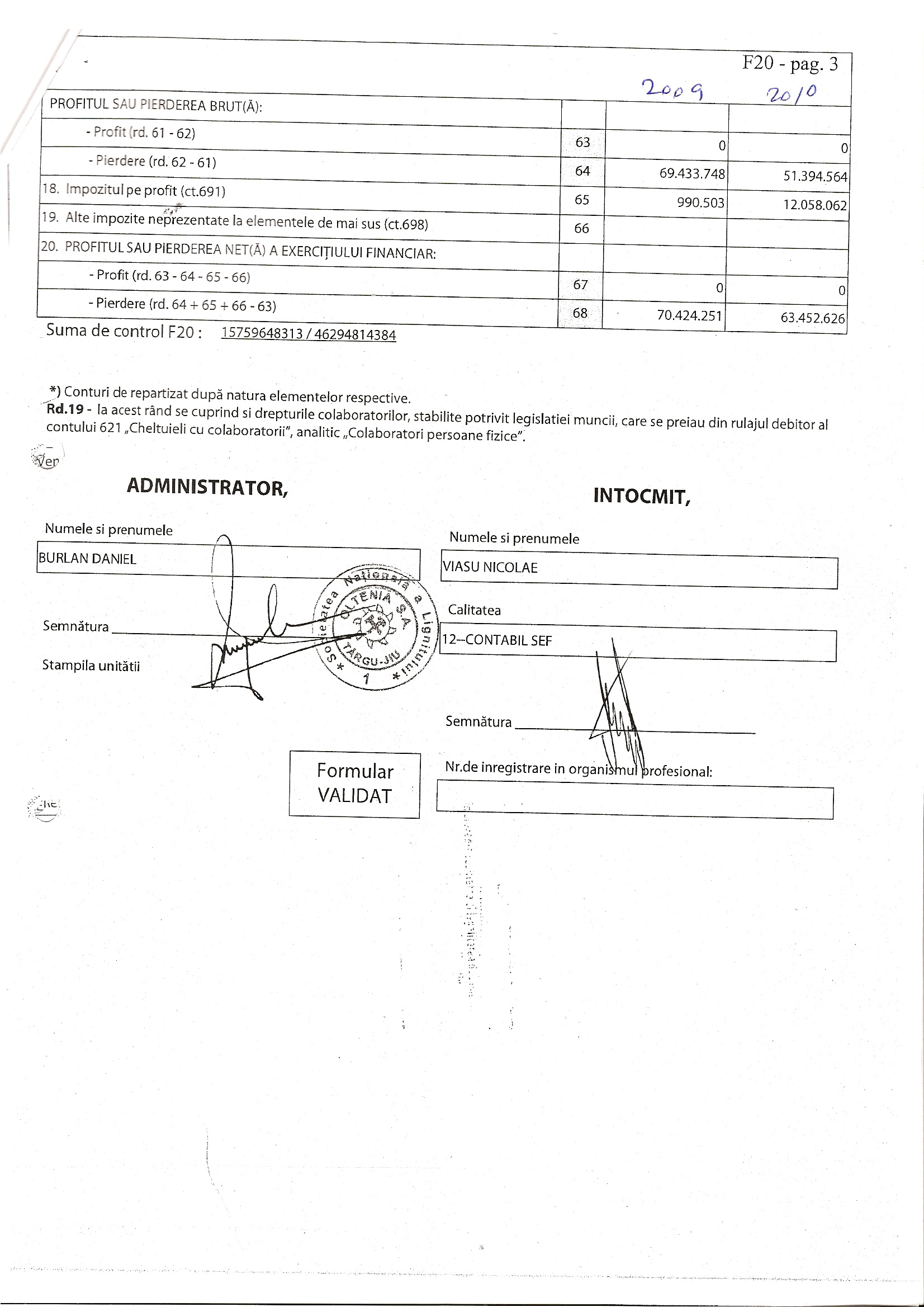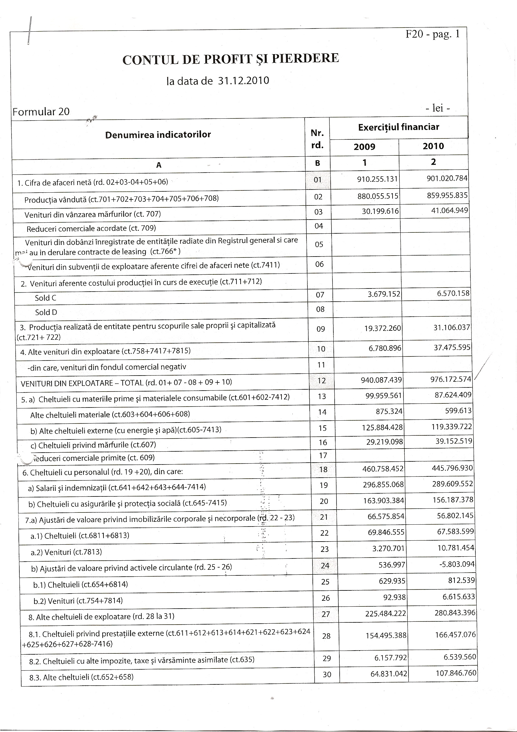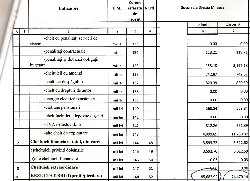 1.    Afirmatia ca, la integrarea in CEO,  societatea SNLO era pe profit este falsa, la 7 luni existand o pierdere de 85.682.020. RON, conform contului de profit si pierdere semnat de dl. Burlan Daniel (Anexa 1).
